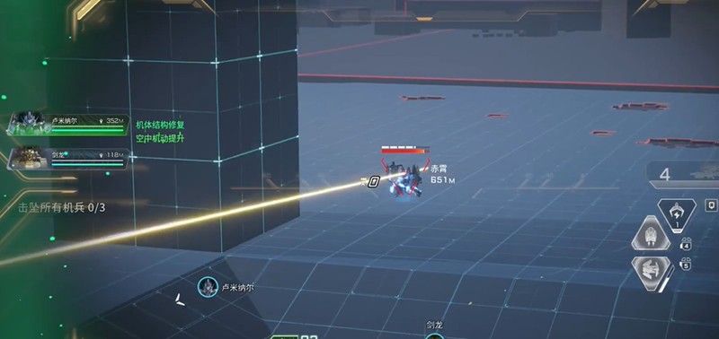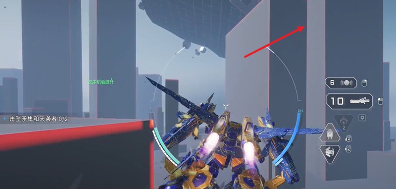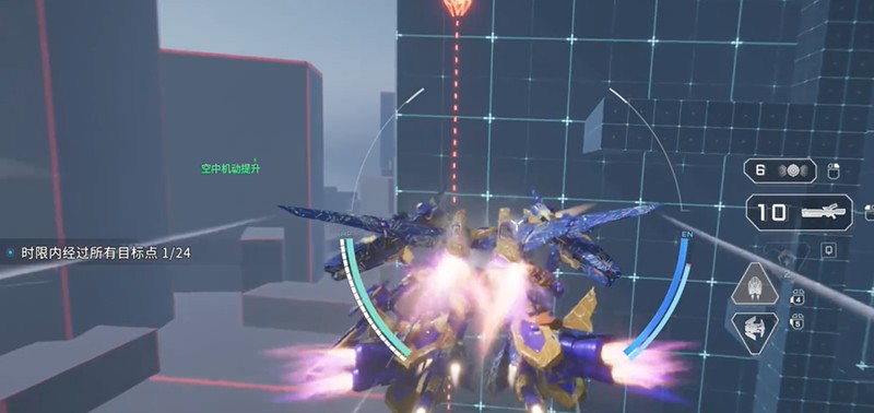 第一关主要测试玩家的基础操作能力,需要灵活运用冲刺和攀升技能。在挑战过程中,可以尝试关闭七条技能让机体垂直坠落,这样能够获得更好的攀升起点。从下方直接上升也是可行的策略,关键是要保持机体的机动性。
