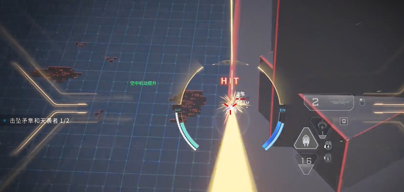 最后一关重点考验射击准度,需要浮空状态下瞄准射击。由于距离超出自动锁定范围,瞄准时要稍微提前。天启者的移动速度比矛隼快,相当于按了shift键的效果,因此准心要更靠前一些。多练习就能掌握射击节奏。
