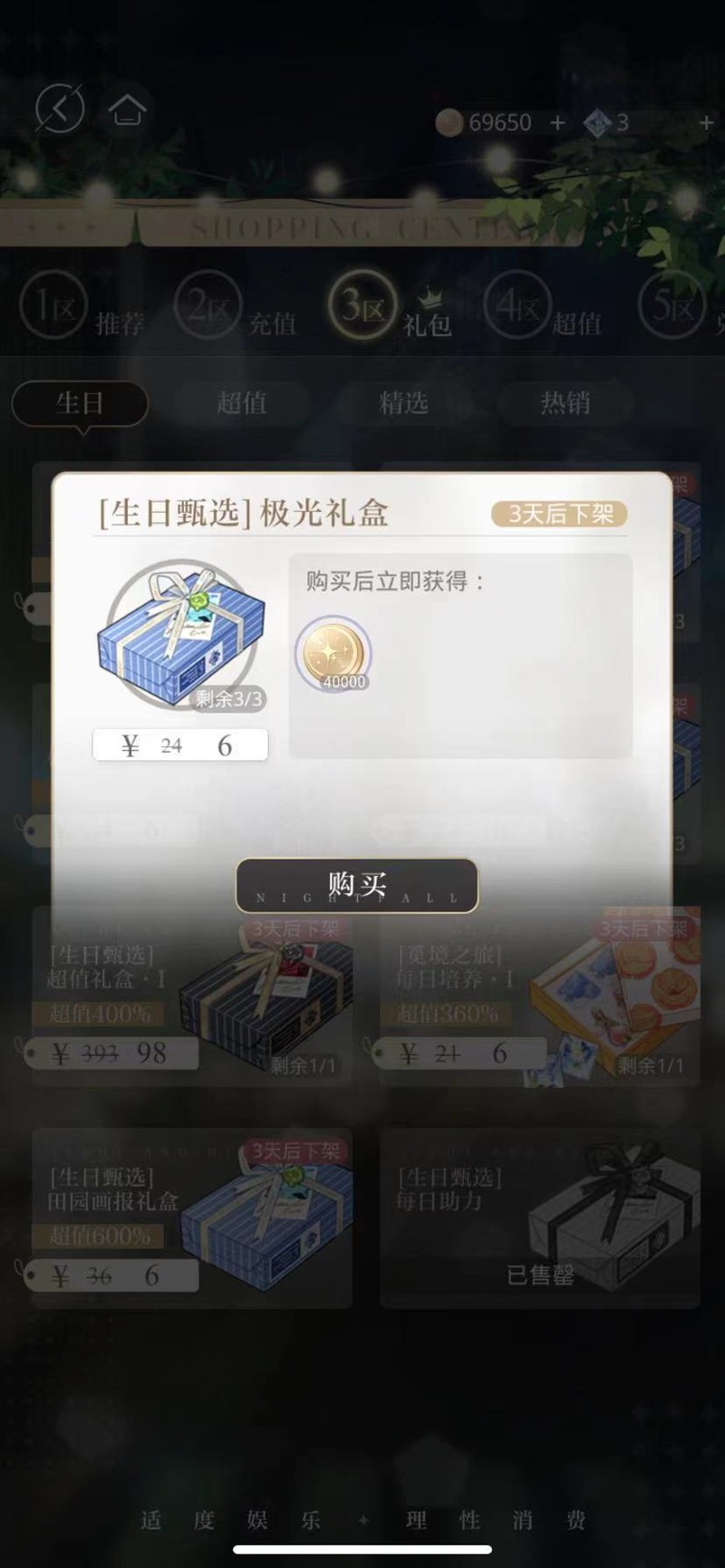 商城还提供专门的极光礼盒购买选项,售价6元的礼盒开启后可获得40000极光币。这是快速获取大量极光币的有效方式之一。