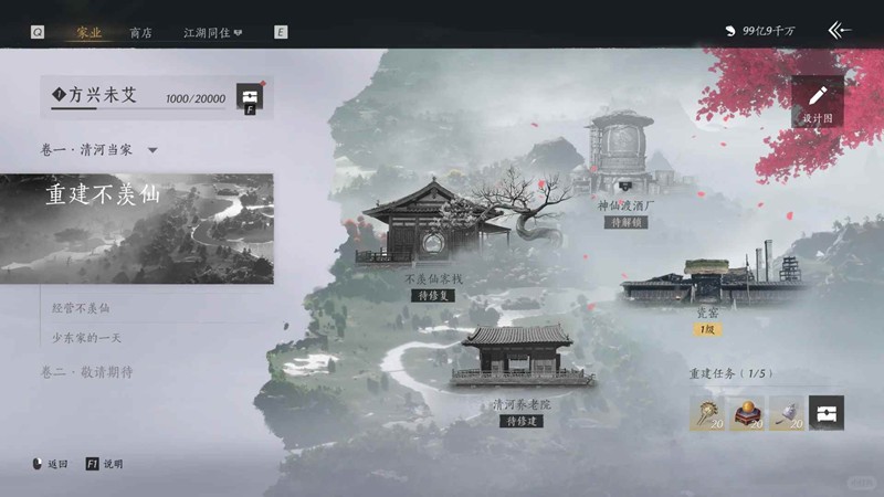 重回故地,全新的「家业」玩法系统中,卷首清河的广阔天地,大有可为。