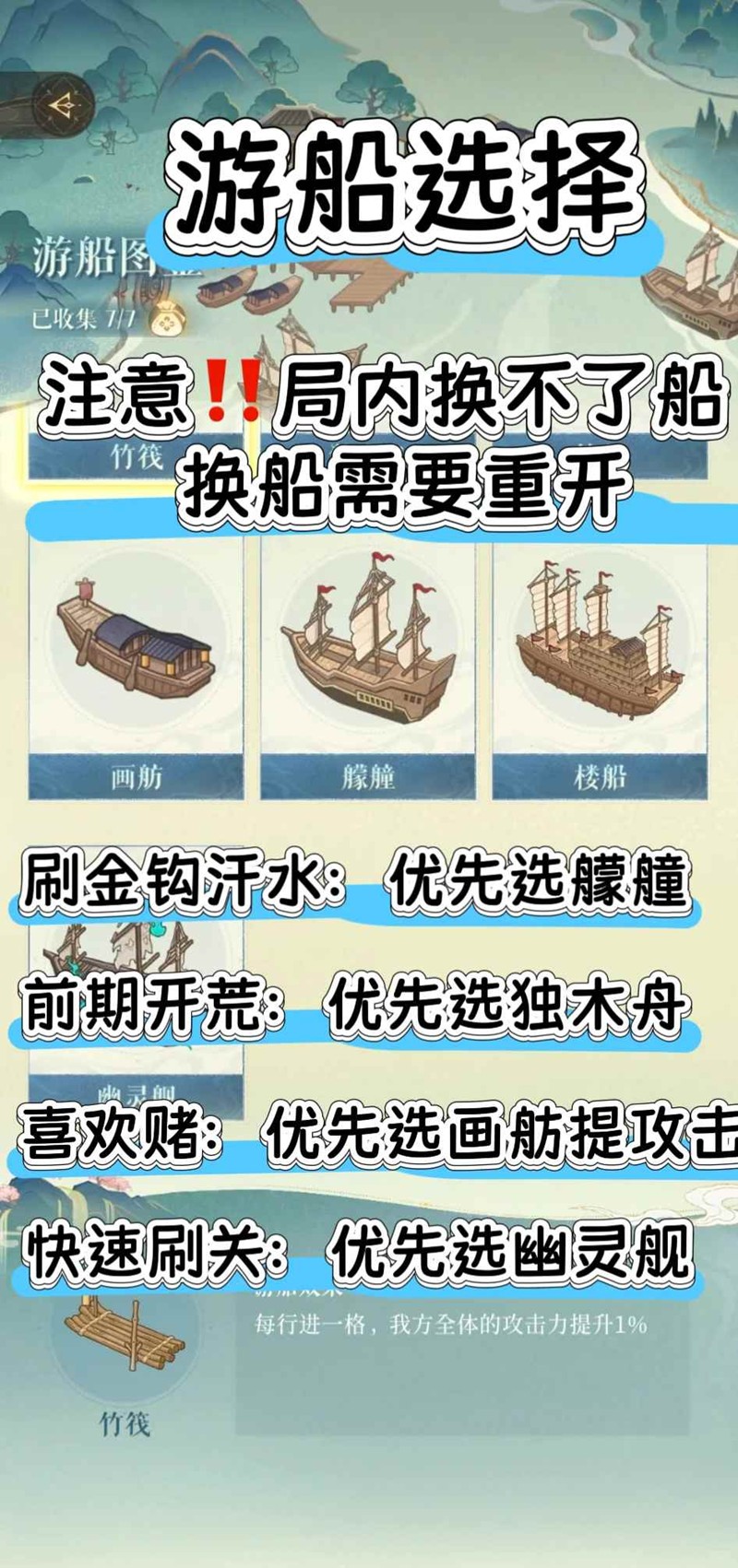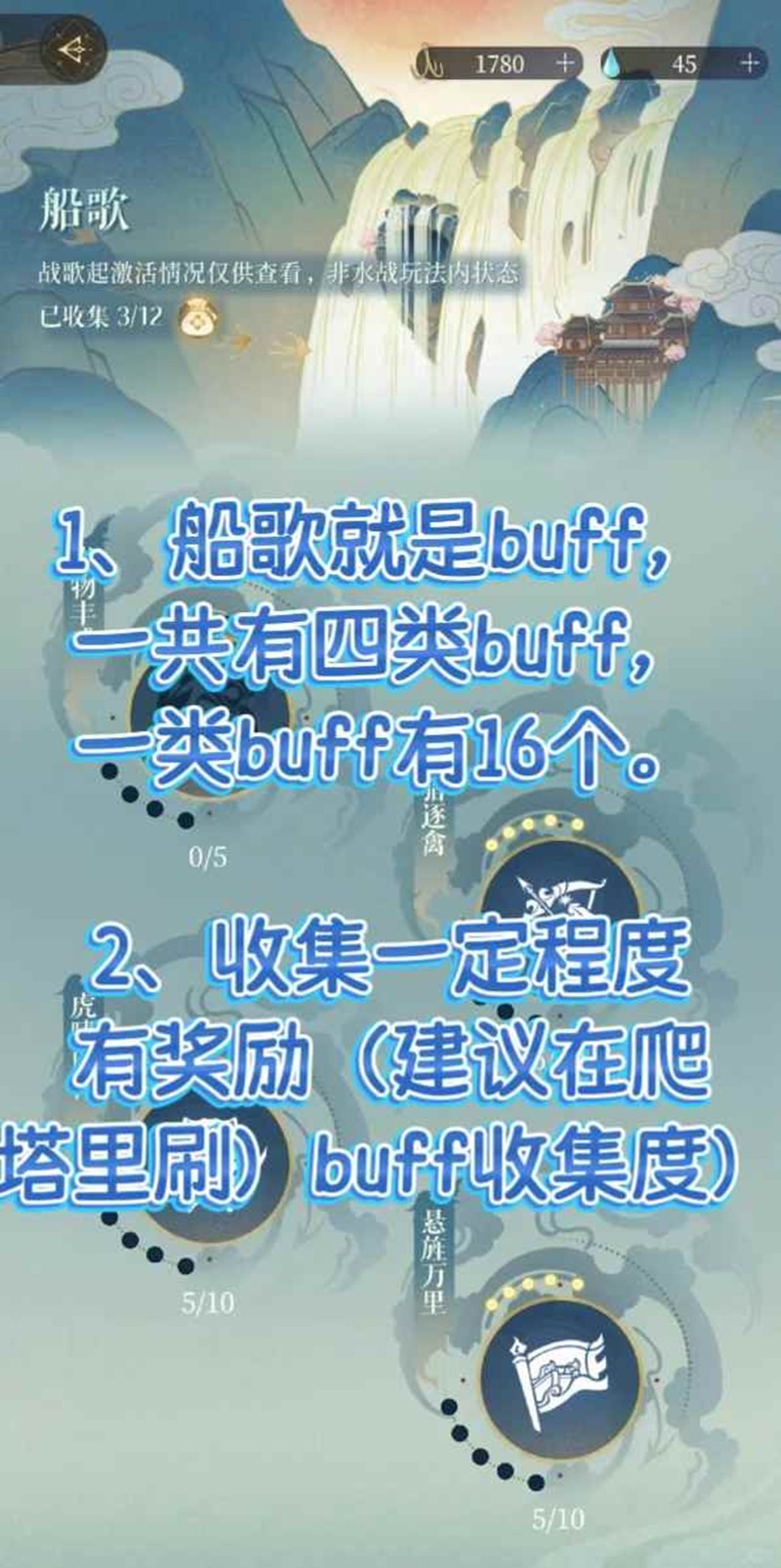 8. 其余类型的船歌选择尽量均衡,主输出的buff优先选到10及以上。