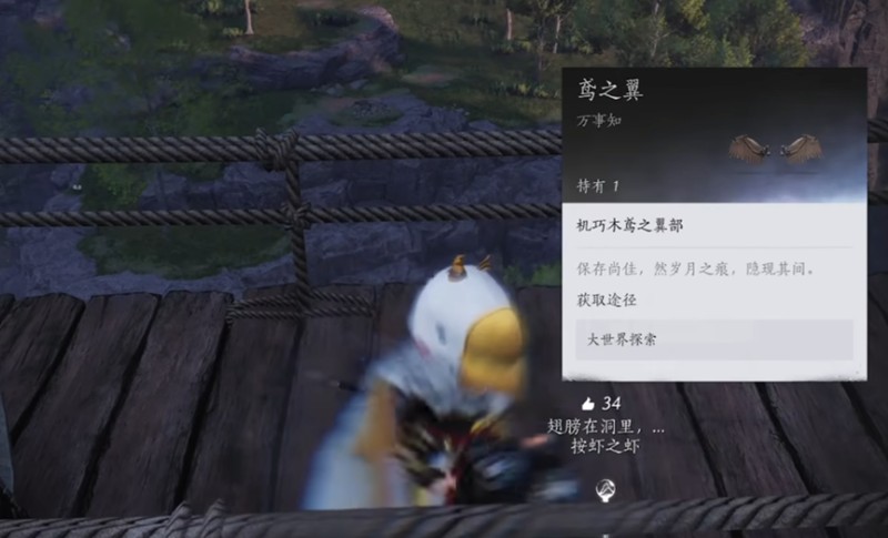 第二个碎片的获取需要玩家来到镜潭桥上。站在桥对面位置时,需要利用轻功飞跃到山河后方。沿着山路继续前进就能发现碎片。如果找不到具体位置,也可以前往李守杰背后的山河区域,在墓碑前同样能够发现这个木鸢碎片。