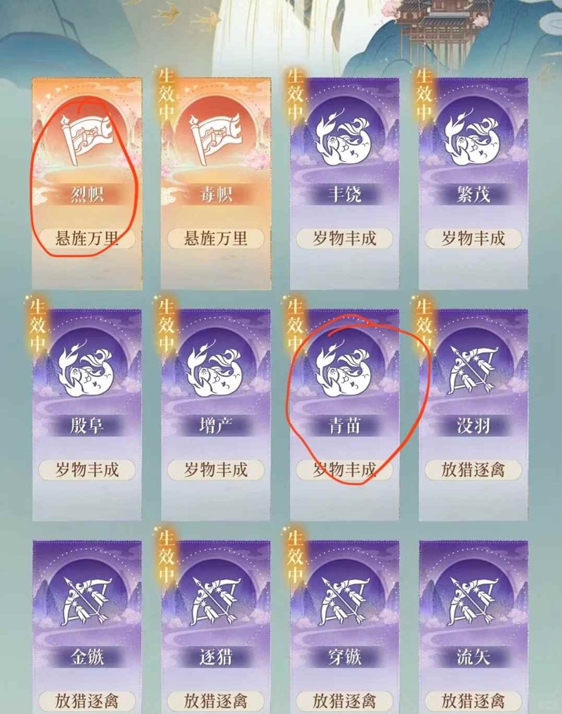 1.岁物丰成:增加生命和治疗的buff
