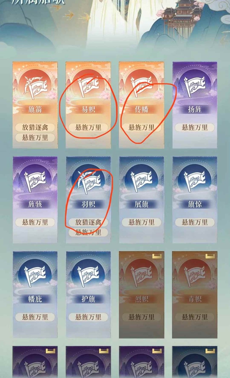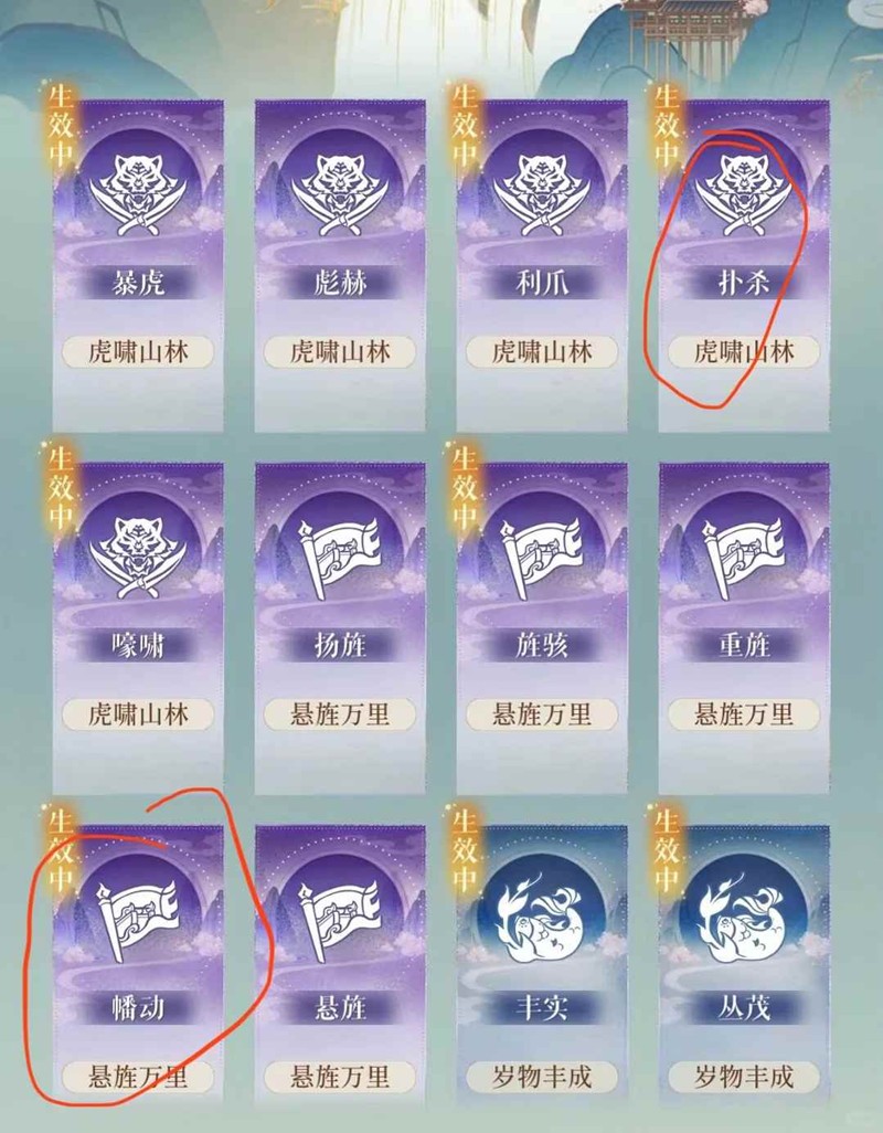 我的重点在悬旌万里和虎啸山林上,因为这俩个较为重要!!!