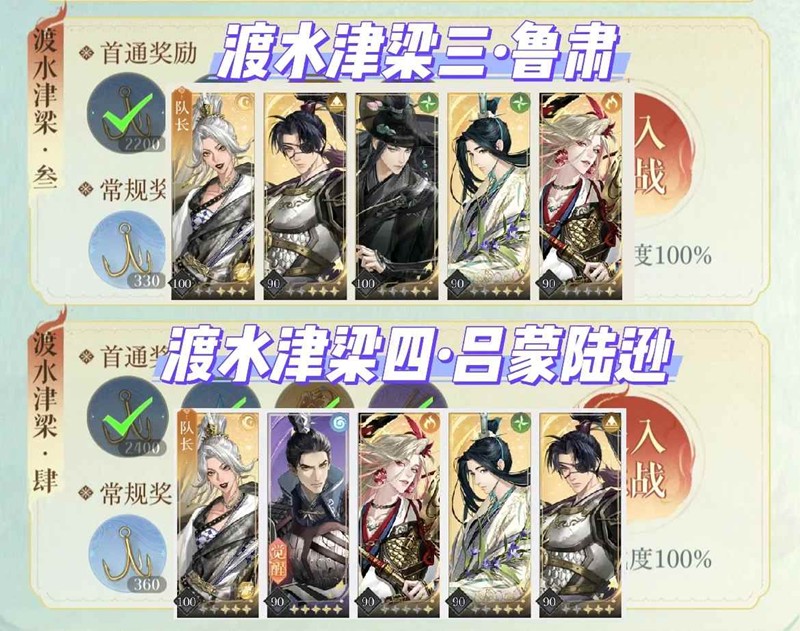渡水津梁四吕蒙陆逊:对准吕蒙打,每回合让身上火种最少的人第一个行动,火种到3层就应该去打桶清火了(桶60%和30%血各清一次)。吕蒙进入二阶段后每3的倍数回合会秒人,让辅助第一个行动谨防秒徐庶,快速杀掉吕蒙减少减员数量