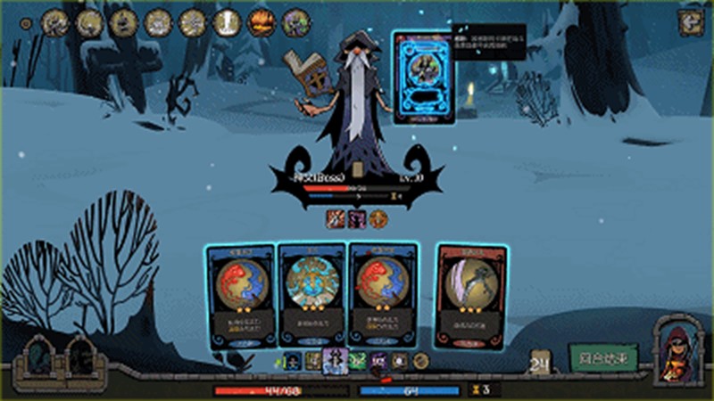 契约师的职业技能分为战斗外和战斗内两种。战斗外技能"灵魂灌注"可以在生命上限和初始法力之间进行选择,需要六次战斗冷却。战斗内技能"契约代价"通过牺牲2点生命抽取两张牌,冷却三次战斗;"命运终结"则能从牌组选择一张咒术牌并使效果翻倍,冷却五次战斗。这些技能为契约师提供了灵活的战术选择。