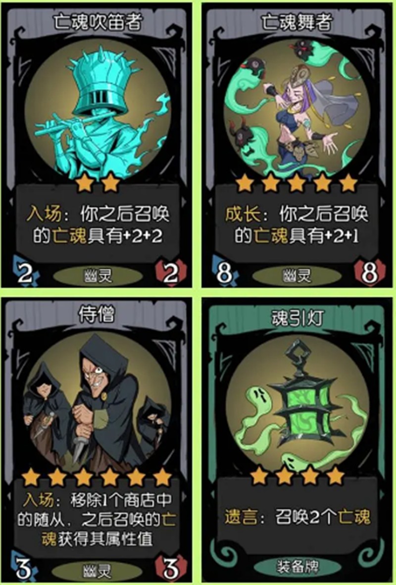 亡魂宝箱和亡魂吹笛者是强化型卡牌。亡魂宝箱可以提升船长的属性,增强召唤物的质量。亡魂吹笛者则能进一步强化场上所有召唤单位,让它们获得更强的战斗力。这两张卡牌的使用时机很关键,建议在场面稳定后使用。