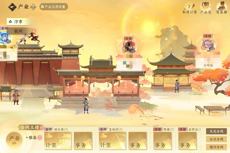 4.金阙/玉楼产业就像一个氪金版战令,按正常进度(即不加码不抽奖)金阙可领到背景档/玉楼领到气泡档 剩余奖励基本上都是要通过加码和抽奖获取,消耗量比较大,如果你对后续奖励没有想法,可以直接选择摆烂