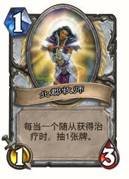 北郡作为牧师的过牌手段已经成为了一种习惯,但是在这套体系中北郡却只能被淘汰,因为他既不符合复活体系,也没有大量怪和治疗法术给他刷牌,更没有BUFF支持其站住场。我为什么要一张需要配合、不一定过到牌、还影响复活体系的牌呢?