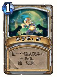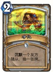 这张牌是我认为全职业最优质的过牌之一,原因就不说了,只说下用法。鉴于这套卡组前期随从少,有人会说没有随从加盾,那么问题来了,什么时候需要这张过牌?答案是急需一张解的时候,那么对于牧师来说,痛灭埋无关血量,给对手加2血又何妨?以后应该会看到这张卡更灵活的运用。一张1费稳定的过牌(别问我对方也没随从怎么办,都攒手牌时牧师最怕的就是牌用不掉。。。),法术无随从,很适合这套体系。
