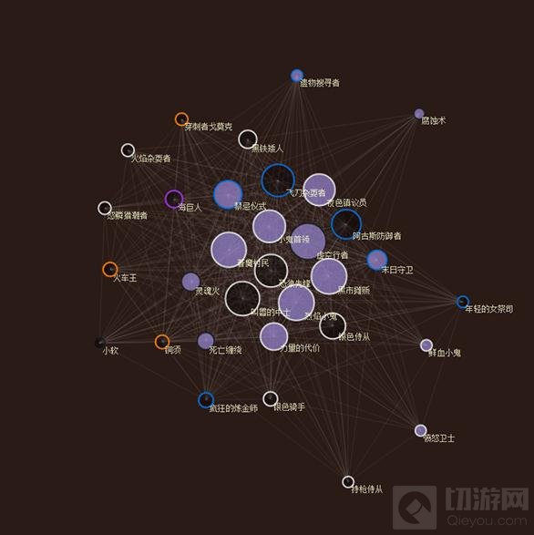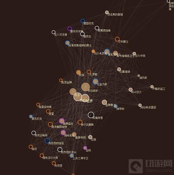相反,两张没有直线相连的卡意味着它们之间互相排斥。而这在我们的可视化的数据中,就很容易反映出核心卡被大多数卡组所使用(例如小斧子和斩杀),它们出现在图表的中间。而一些在特定卡组中使用的卡(例如阿莱克斯塔萨的勇士)出现在图表的外围。