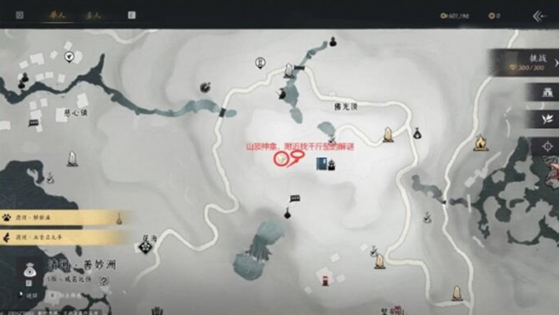 在郭婶附近的山顶神龛周围可以找到第一个千斤坠道具。使用这个道具解开谜题后,就能获得一个奇怪的钱袋。这个钱袋没有任何标记,但确实是任务必需品之一。