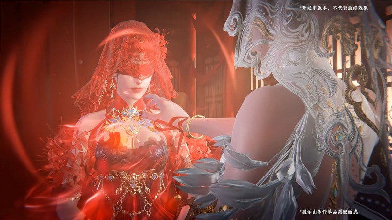 宁红夜神品时装【赤皓新囍】:以炽热的红色调为主,展现出宁红夜的英姿飒爽与独特魅力。