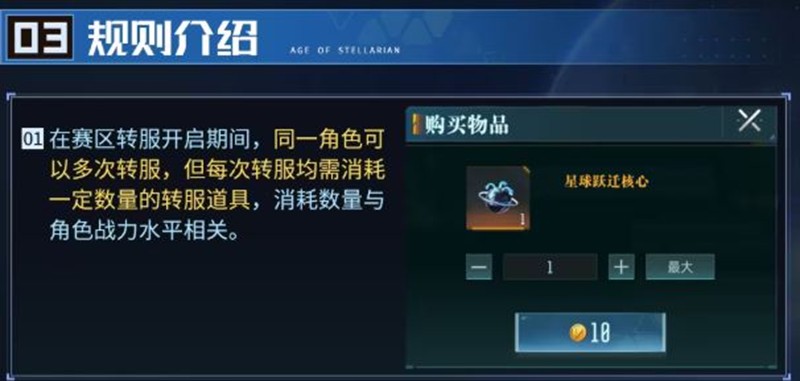 群星纪元S2赛区转服功能是什么?转服功能有什么用?在S2赛季群星纪元将重磅推出转服功能,下面小编就带来转服功能介绍,以便在新的赛季前面小伙伴们可以提前了解该功能~