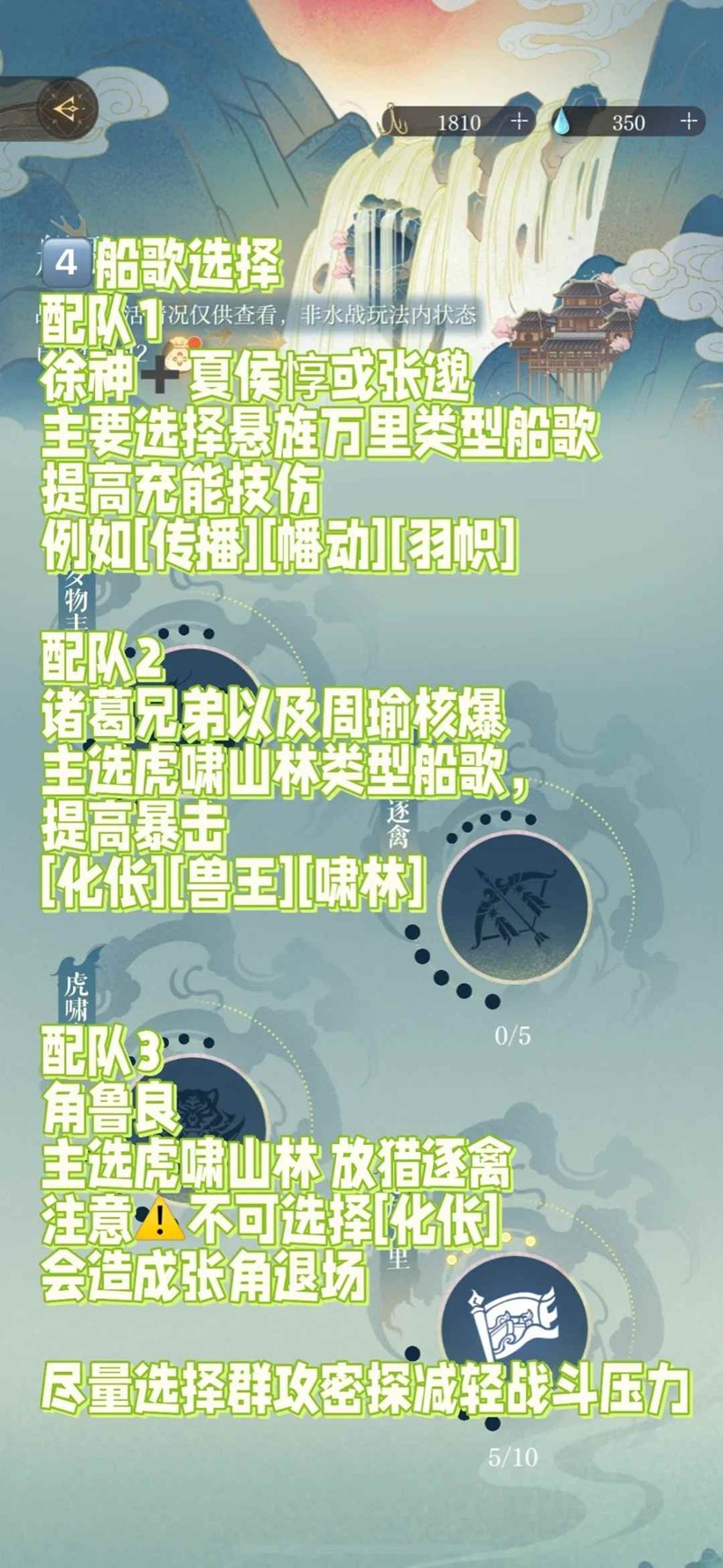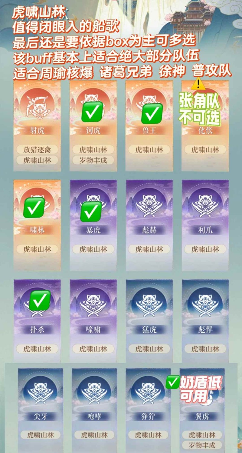 主选放猎逐禽 虎啸山林类型,注意不可选择[化伥]会造成张角退场