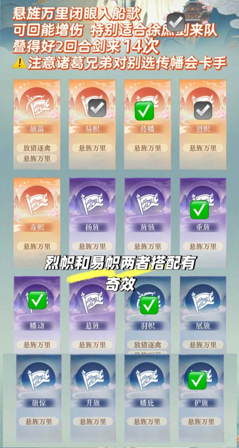 邪修推荐:最简单的办法就是刷天赋树,先往上爬拿到幽灵船,普通船可以先不拿,拿到幽灵船之前会解锁传幡buff,打关期间捡到传幡悬旌重旌毒帜化伥,其余的暴击持续伤害治疗啥的随便捡点,buff捡齐了打最终boss只上一个徐庶,徐神会一直放大,直接解放双手,徐神一直剑来轰死对面,不用考虑打不打得过的问题