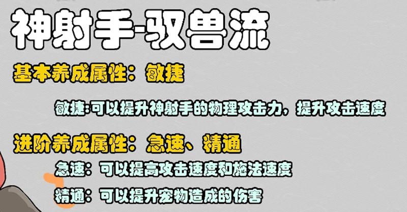 神射手职业主要依赖暴击属性,建议将60%的属性点分配给暴击。御兽派神射手需要45%的幸运属性来触发特殊效果,同时45%的精通等级能提升宠物协同作战能力。鹰流派神射手则需要80%暴击配合25%急速,确保技能快速释放的同时保持高爆发伤害。