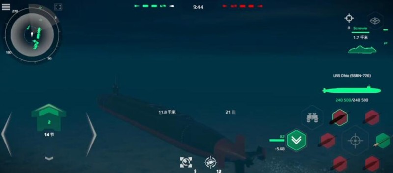 俄亥俄级潜艇则定位为攻击型核潜艇,综合性能非常全面。它的机动性在同类潜艇中名列前茅,搭载花钢研导弹后能进行精准的远程打击。俄亥俄还具备支援补给能力,特别适合中远距离的火力压制。不过这款潜艇更适合阵地伏击战术,正面作战能力相对较弱。
