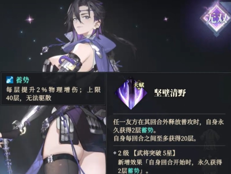 王异的核心机制在于蓄势的叠加,每当她回合结束或队友在回合外普攻时,都能获得蓄势层数。这个效果可以显著提升她的物理增伤能力,随着战斗时间的推移,她的输出会越来越强。