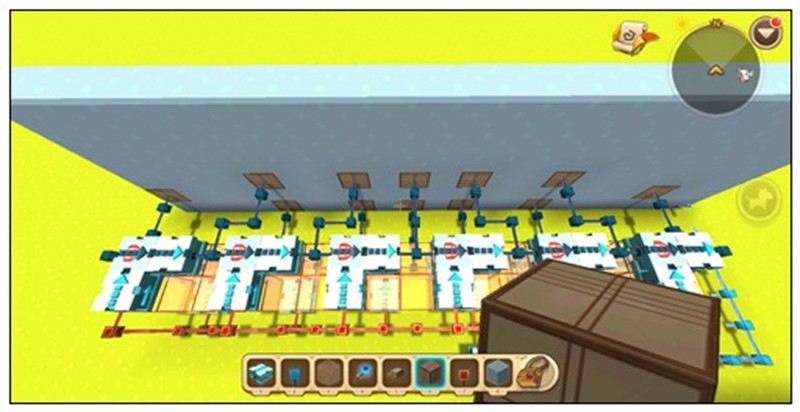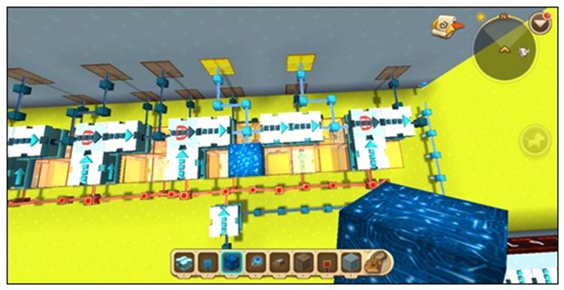 这样迷你世界的循环电路就制作完成了,可以根据需要连接用电器并进行装饰。