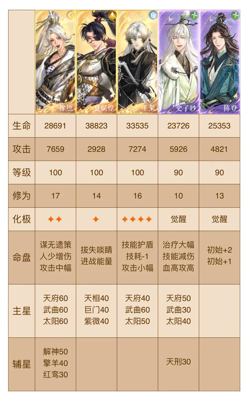 回合越多,奶回的越少,所以越早结束越好【tips:奶练度不够,可以给ee/需要回血的密探带红鸾,不要带武曲加生命,带纯攻】