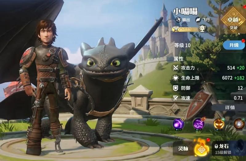 与驯龙高手联动的限定英雄小嗝嗝是目前版本当之无愧的T0+级角色。作为飞行输出单位,他拥有全游戏最高的面板数值,能够同时攻击空中和地面目标。小嗝嗝的主动技能是喷吐等离子弹,大招音爆奇袭兼具聚怪控制和爆发伤害。建议50级前选择上线灵脉,之后转下线。本命龙石适者生存能提升暴击率,前期可用弱点感知替代。