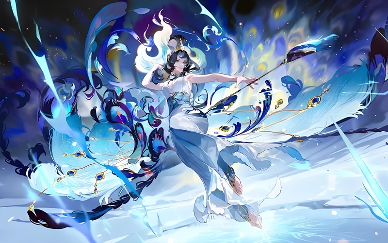孔雀明王拥有7个技能,分为流羽姿态和开屏姿态两种形态。流羽姿态下的技能包括流羽风、荆棘斩和大招迷离之羽,主打远程输出和控制。开屏姿态则包含流羽斩、离笼曲和雀舞荆棘,更侧重于近战爆发。流羽风可以造成范围伤害并附带减速效果,而开屏姿态的流羽斩则能对前方敌人进行强力突刺。