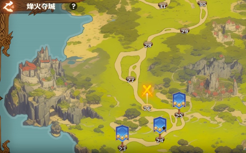 想要开启龙石战争烽火夺城玩法,需要满足两个条件:主线剧情推进到第5章,同时主城等级达到6级。达成条件后,主界面会亮起战役选项,从这里就能进入烽火夺城玩法。这个玩法本质上是一个闯关模式,总共包含50个关卡,每个关卡都有独特的设计和要求。