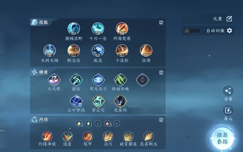 我沧澜走的是 元素流,主要还是内功元素攻击加的比较多,现阶段攻克元素都差不多,不用过多纠结走哪个。