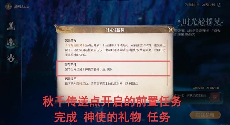 秋千传送点开启需要完成支线任务:神使的礼物