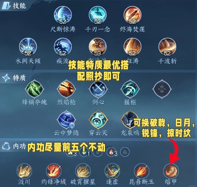特质:龙吟大特质 玄机大特质 剑心 烈焰枪 握枢 锋镝夺魄 云中梦影