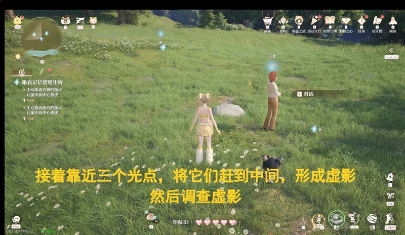 主动靠近三个萤火,让它们向中间靠拢,形成虚影,然后调查虚影;