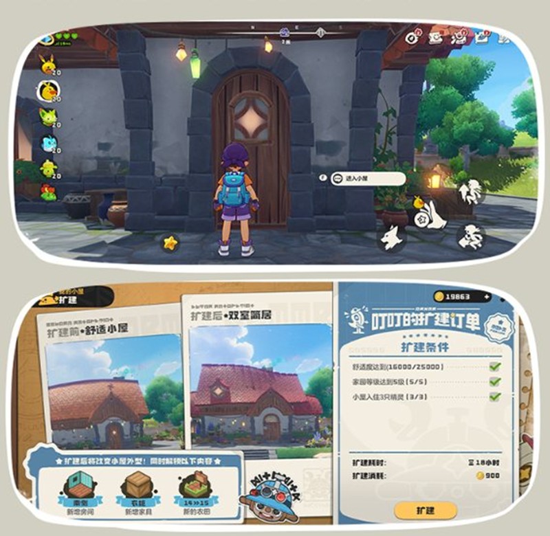 游戏支持单人剧情和多人互动玩法,玩家可以组队挑战副本或进行PVP对战,也能互访家园协作孵化稀有精灵蛋。针对移动端进行了操作优化,并实现了PC和手机的三端互通,确保玩家能获得流畅的游戏体验。