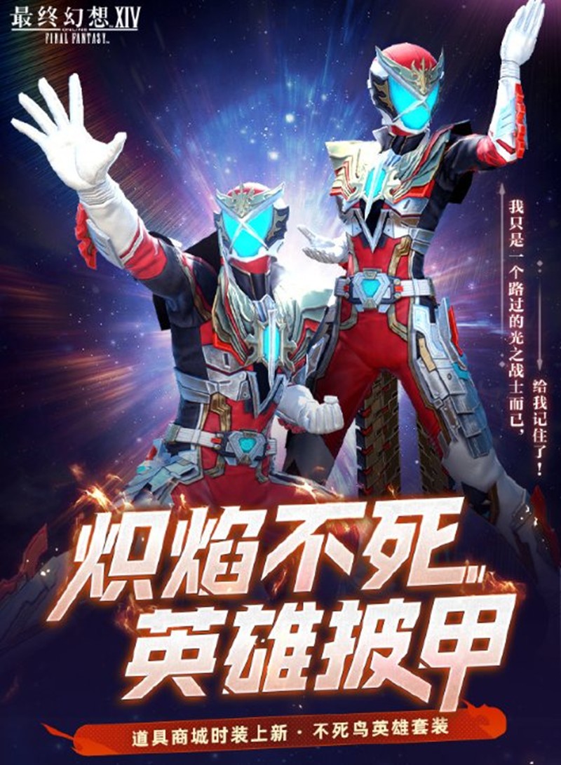 最终幻想14道具商城现已上架新道具:不死鸟英雄套装。同时,我们还为冒险者准备了6张面值1500点券的往年红莲节道具专属优惠券,快趁此机会将曾经心心念念的那个道具收入囊中吧!