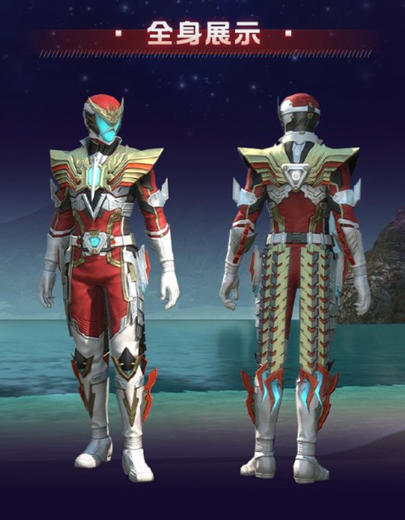我们可以看见,“不死鸟英雄套装”以鲜艳的红色和金色为主色调,整体造型充满力量感与英雄气息。套装不仅拥有华丽的外观,还附带独特的特效与动作,让玩家在游戏中尽情展现个性与风采。