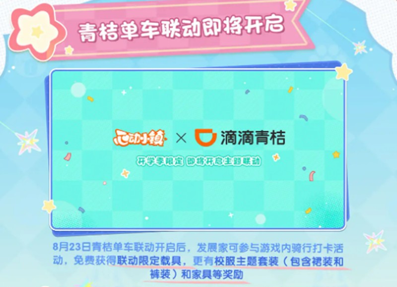 多萝西的服装店将推出全新时装,诺比小兔和青蛙王子波仔也会免费送出系列套装。8月还将上线青桔单车联动载具和校服套装,让玩家可以骑着单车游览心动小镇。此外还有3套水果时装秀系列套装等待玩家收集。