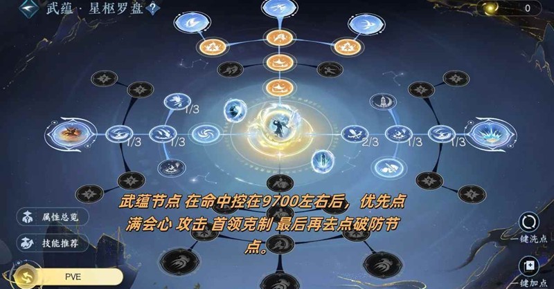 其次:武蕴节点 在命中控在9700左右后,优先点满会心 攻击 首领克制 最后再去点破防节点。