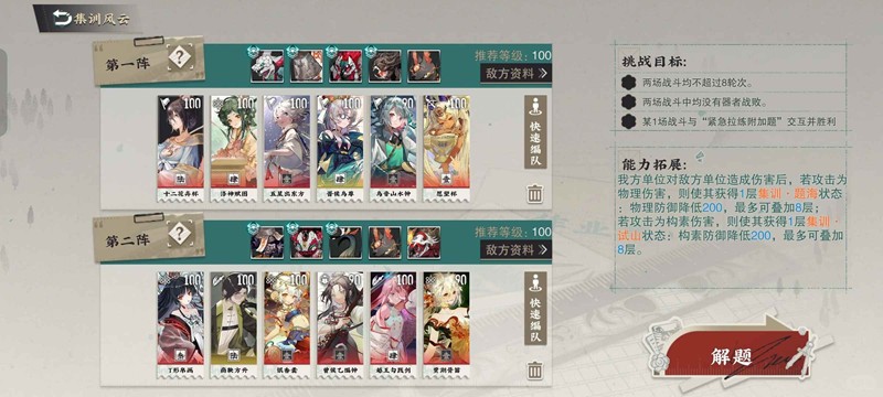 还是比较轻松的,从这个二队玩法更看出了策划需要加强你的配队意识,这里给大家上半和下半各自推荐两套阵容。