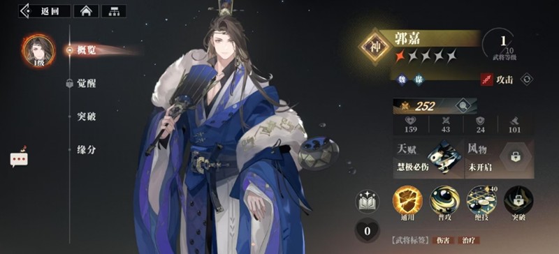 郭嘉是谋士队的核心成员。他的绝技可以驱散敌方增益,对一列敌人造成154%法术伤害,同时为友方提供101%攻击力的治疗。最强势的是能击退敌方全体50%行动条,后期还能附加眩晕效果。这种控制+治疗+输出的全能表现,让郭嘉成为团队中的战术核心。