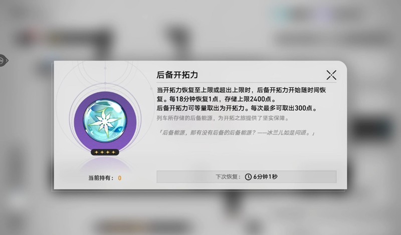 在崩坏星穹铁道中,体力也就是开拓力的恢复速度是每六分钟恢复一点。体力的上限在2025年年初进行了调整,增加到了300点。这意味着开拓者们在游戏过程中可以拥有更多的体力去探索和战斗。当体力回满后,恢复速度会降低为18分钟恢复1点,继续补充到后备开拓力中,后备开拓力的上限为2400点。这一机制让开拓者们在体力管理上有了更多的策略选择。