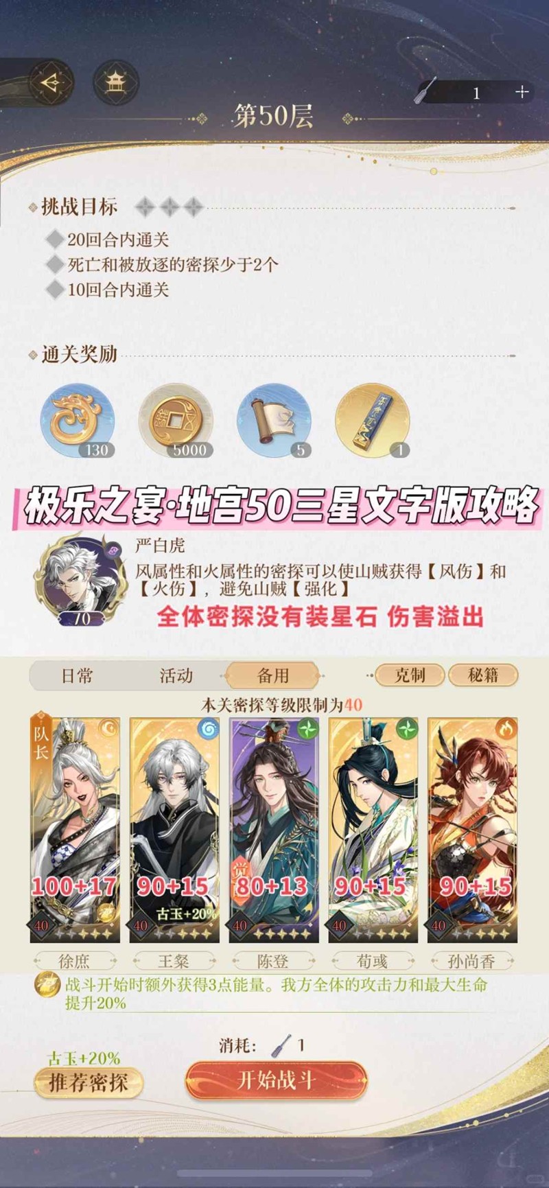 以上就是如鸢刘辩极乐之宴·地宫50三星文字版攻略的全部内容了,更多游戏资讯,攻略内容敬请关注切游网,您的支持是我们努力的动力!