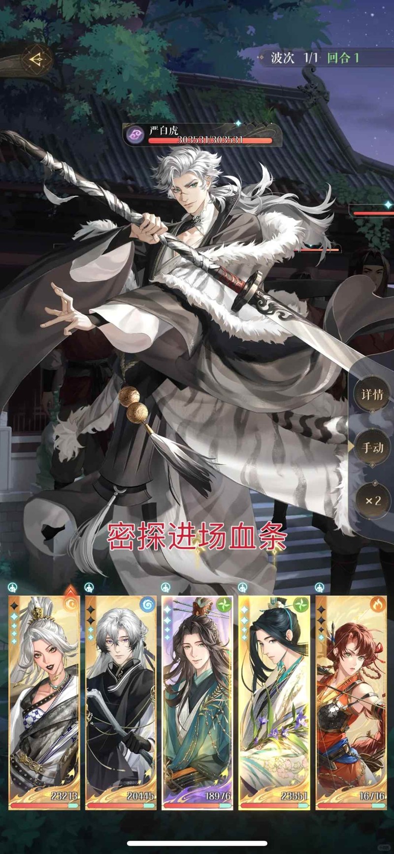 2. 严白虎有队友存活时会提升自身1000免伤,我方对严白虎攻击伤害是-1,所以我们先把小兵都打死了再打严白虎