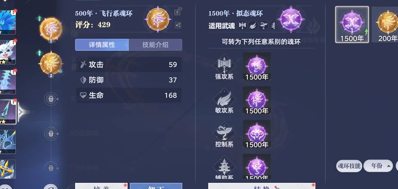 魂环按年限分为十年、百年、千年、万年和十万年五个等级。年限越高的魂环提供的属性加成越强,品质也更好。此外游戏中还存在特殊魂环,包括凶兽魂环、神级魂环和气血魂环等,这些特殊魂环能为角色带来独特的技能效果。