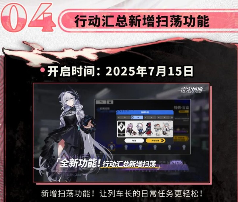 ※探访过对应城市后方能解锁对应城市的终端功能行动汇总新增扫荡功能新增扫荡功能!让列车长的日常任务更轻松!