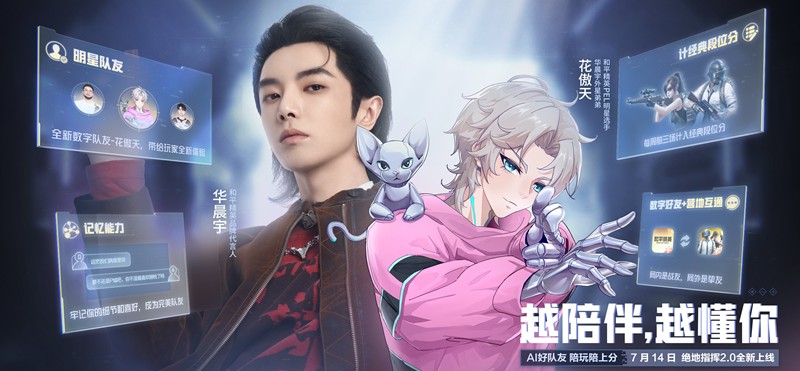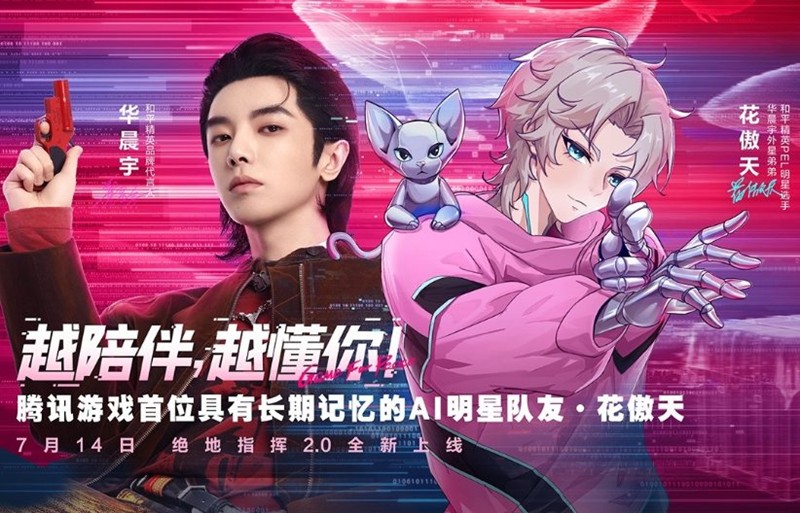 和平精英迎来了一位特别的AI队友——华晨宇。这位虚拟的AI队友“花傲天”于今日(7干14日)更新后正式登场,成为腾讯游戏首位具有长期记忆的AI明星队友~