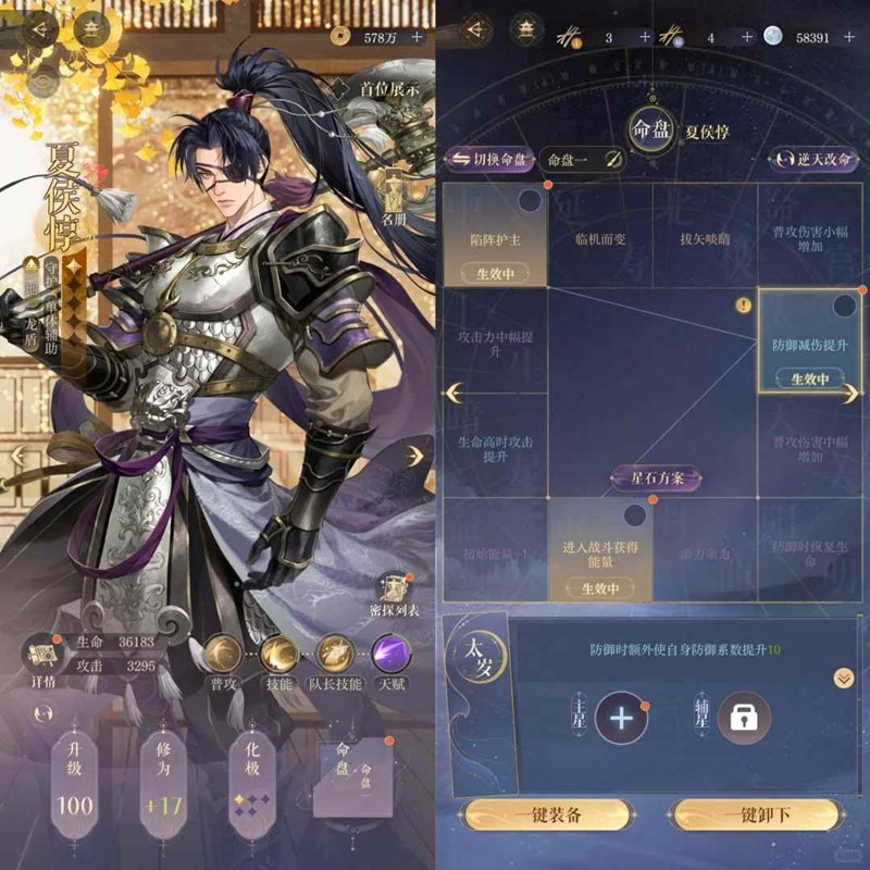 1. 夏侯惇命盘必须有获得能量+陷阵护主