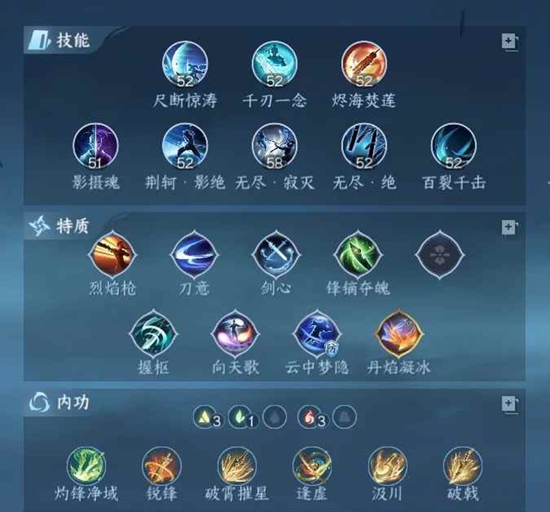 内功:破霄+逢虚+汲川+锐锋+灼锋+掠时纹/破戟