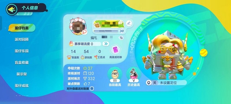 要找到蛋仔乐园,首先需要进入蛋仔派对的主广场界面。在屏幕左上角点击玩家头像,这时会弹出个人信息面板。在这个面板的左侧可以看到多个功能标签,包括蛋仔档案、派对回顾、蛋仔乐园等选项。直接点击蛋仔乐园标签就能进入该功能页面。