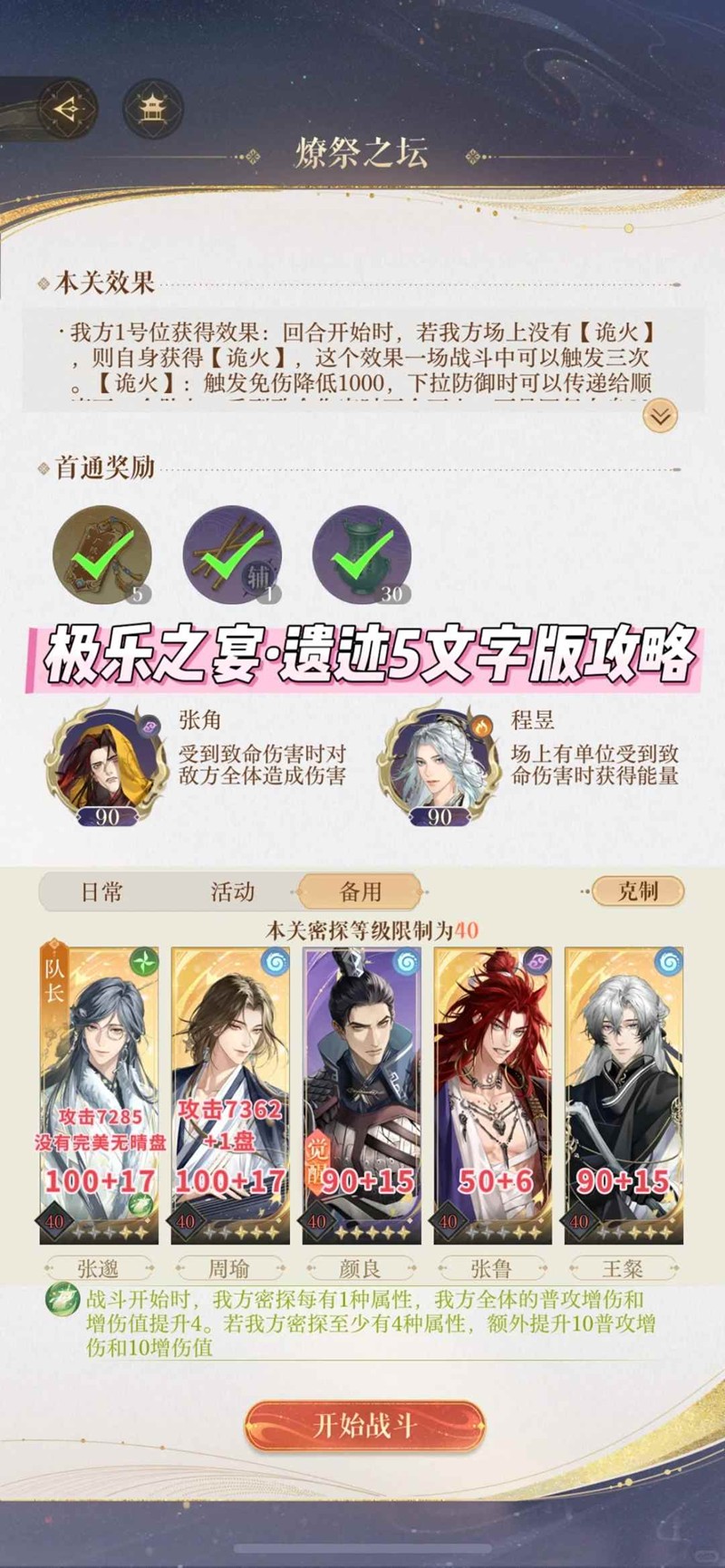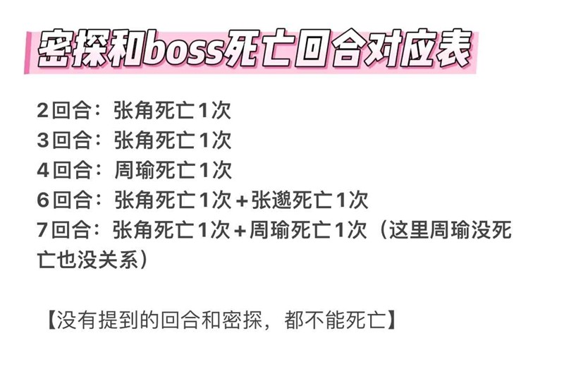 5. 不要更改站位,出手手法可根据自己练度调整,必须对应上张角,张邈,周瑜该死亡的回合