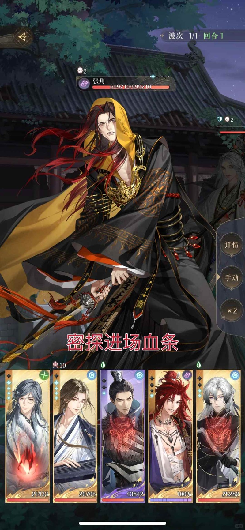 回合9: 邈下拉,瑜下拉,粲大(不能有任何密探再死亡,我方密探死亡次数超过6次自动退场,就算打死了张角也会失败,站不住就拉生命和星石)